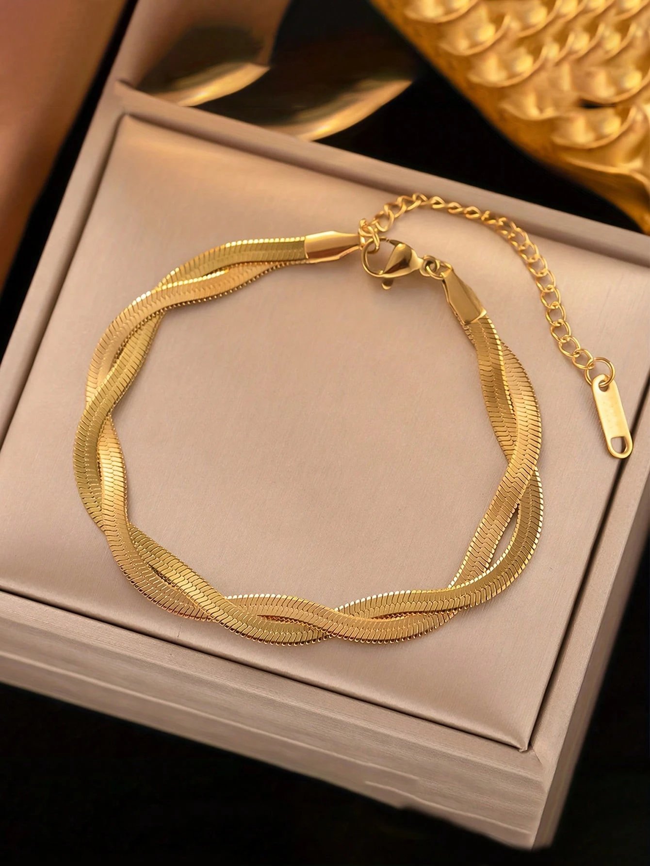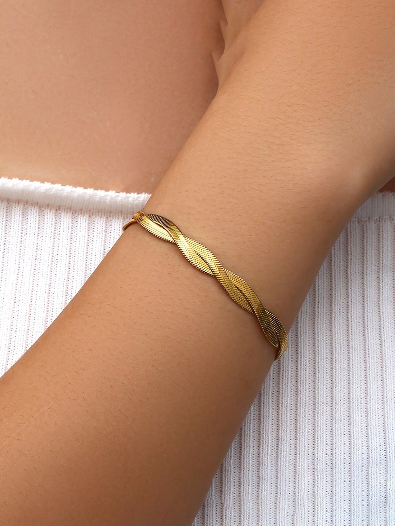سوار أنيق من الفولاذ المقاوم للصدأ باللون الذهبي والفضي